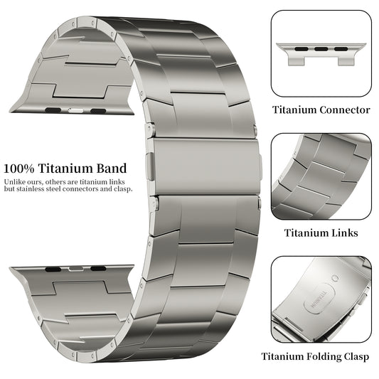 ACESTAR Full Titanium Band Compatible with Apple Watch Ultra 49mm / Ultra 2 49mm / Series 10 46mm, 26mm Wide Adjustable Titanium Links with Titanium Folding Clasp Titanium Connectors and DLC Coati, Ti02 Max/26mm Wide/Titanium
