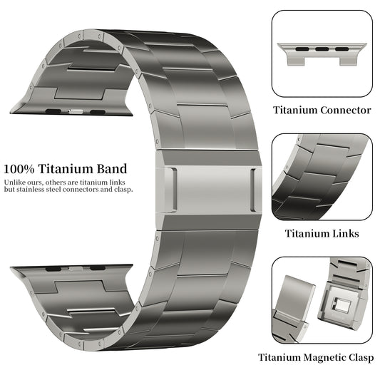 ACESTAR Full Titanium Band Compatible with Apple Watch Ultra 49mm / Ultra 2 49mm / Series 10 46mm, 24mm Wide Adjustable Titanium Links with Titanium Magnetic Clasp Titanium Connectors and DLC Coating,Ti03 Pro/24mm Wide/Titanium