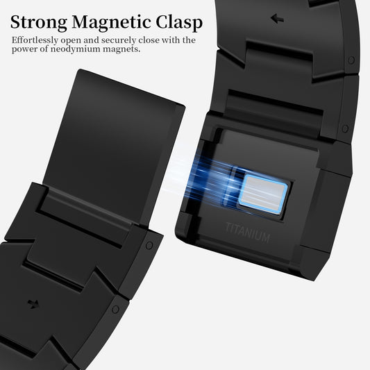 ACESTAR Full Titanium Band Compatible with Apple Watch Ultra 49mm / Ultra 2 49mm / Series 10 46mm, 22mm Wide Adjustable Titanium Links with Titanium Magnetic Clasp Titanium Connectors and DLC Coating, Ti01 Pro/22mm Wide/Black